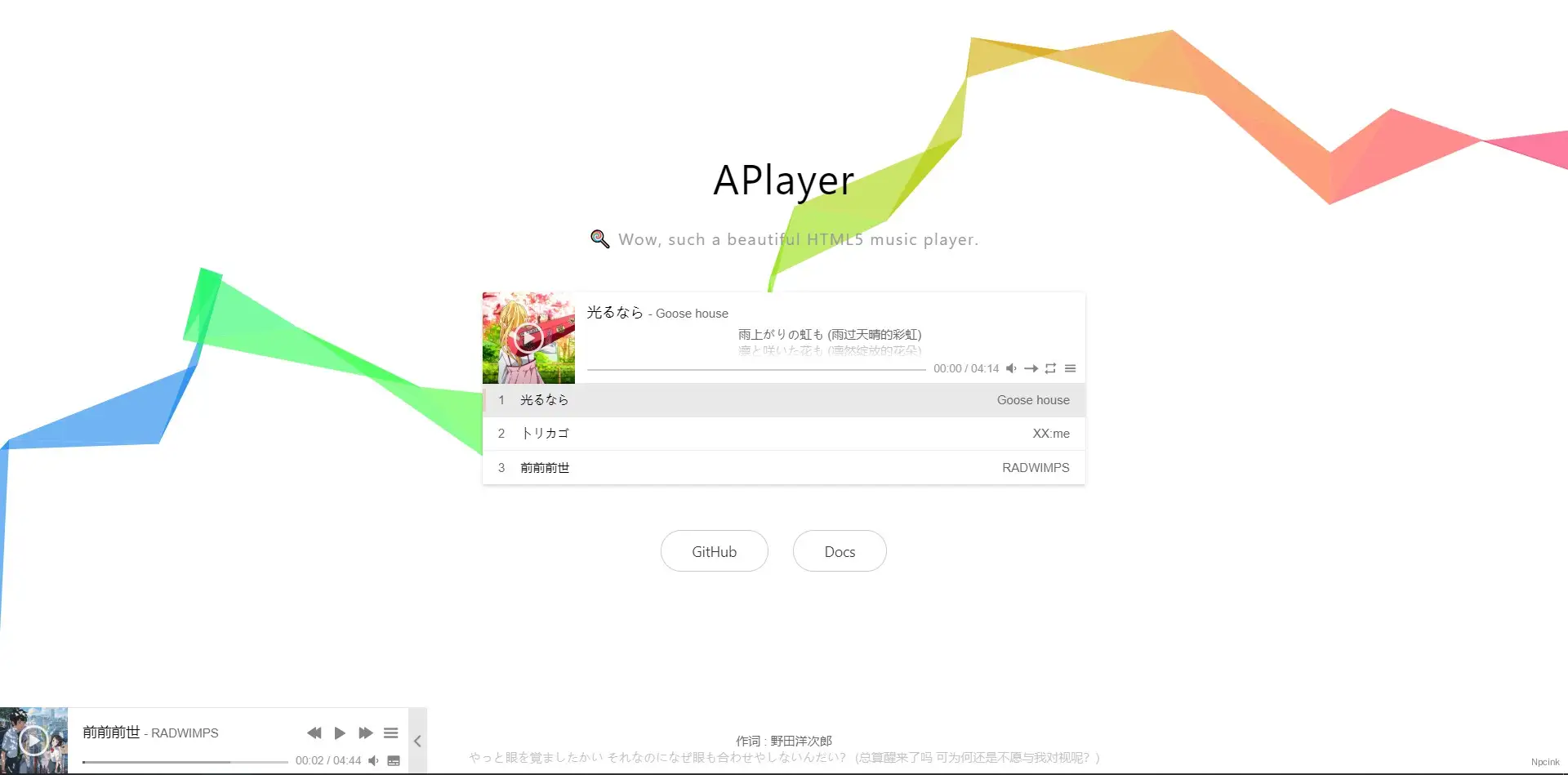 - MetingJS:使用Meting音樂API