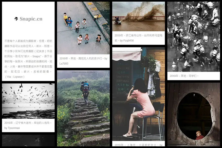 不是每個人都能成為攝影家,但是,好的攝影作品可以出自任何人。斷片,這款typecho主題即是一個分享小伙伴們優(yōu)秀攝影(紀實類)作品的網(wǎng)站。取名為“斷片,Snapic”,源于分享的每一張照片,所描述的拍攝時間、地點、人物、事件等因素或許并不都是完整的,故名曰:斷片,丟幀的影像。(Via:Lopwon)