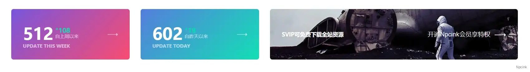 這是一款簡單的網站信息統計卡片,響應式設計,卡片中的數字都是固定值,各位站長可根據需要自行更改,最右邊的卡片還可以做個注冊框彈出,很適合放在網站首頁起一個宣傳作用。接下來,就通過這篇wordpress區塊教程來看看如何實現這一款簡潔的網站數據統計卡片吧。