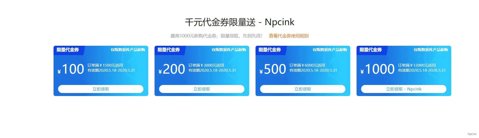 這次分享的是一款來自阿里云的四欄代金券卡片,時尚的藍色洋溢著青春的活力,繁復的價格信息排列有序,主次分明,很適合用在一些需要價格引導的地方。