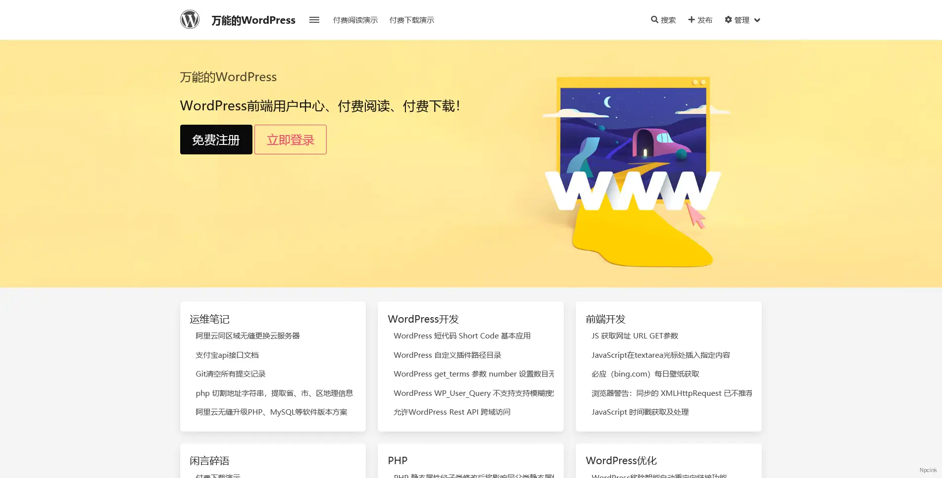 萬能的WordPress主題:前端用戶中心、付費閱讀下載、投稿分成;基于Wnd-Frontend;無限二次開發。