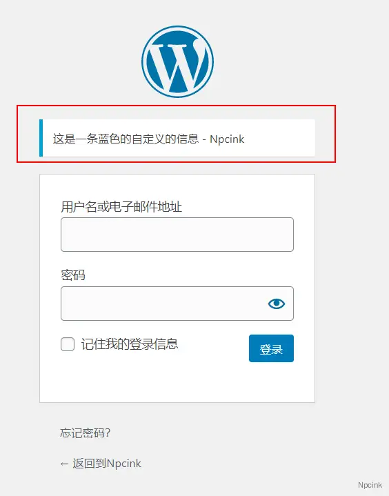return "<p class='message'>這是一條藍(lán)色的自定義的信息 - Npcink</p>";