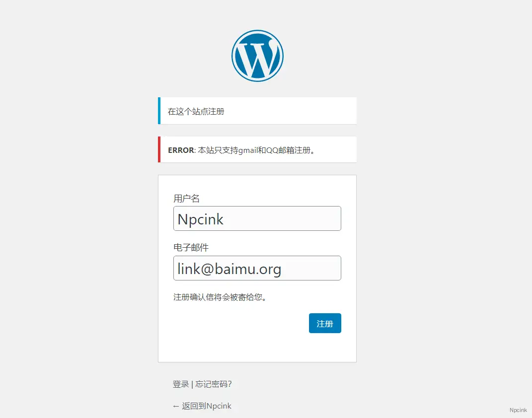 * WordPress注冊郵箱白名單