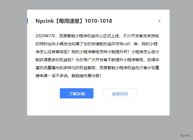 一款來自百度搜索資源平臺的彈窗提示W(wǎng)ordPress區(qū)塊,簡潔精致的設(shè)計,恰到好處的排版,適合用在一些需要特別注明的地方,或者通知等等。