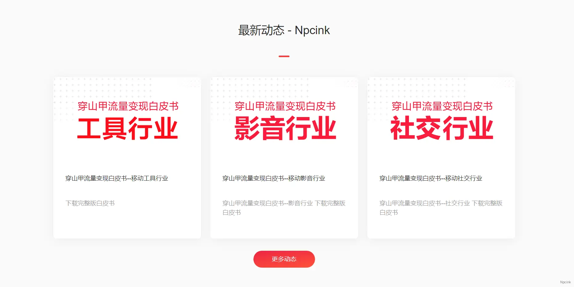 這是一款來自字節跳動公司旗下,穿山甲網站的三欄信息WordPress區塊,大氣的布局,靈動的hover效果,適合用在一些大屏幕上展示的地方。