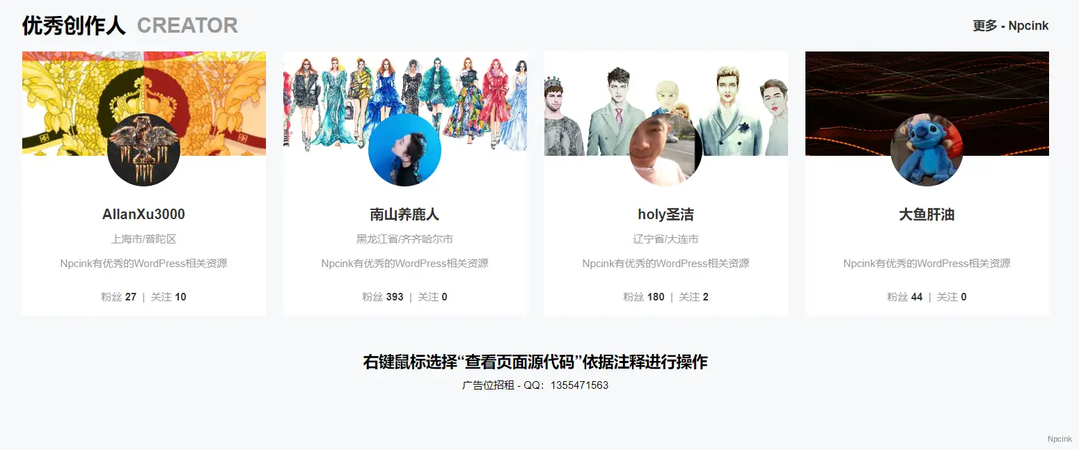 合理的布局與精美的排版,作者的相關信息一目了然,這款WordPress區塊適合用在一些需要展示用戶的頁面