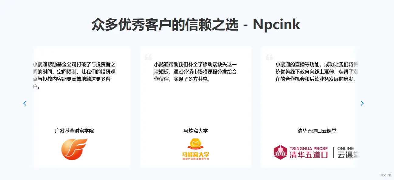 來自小鵝通的三欄評論展示WordPress區塊,可以左右滑動,用以展示一些優質客戶的評價,增強網站公信力。常常用在網站介紹頁面,或者特色介紹等地方。