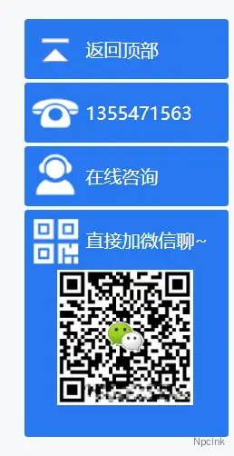 可在右側欄邊展示電話、微信、在線溝通等聯系信息,還可以放一個置頂按鈕。