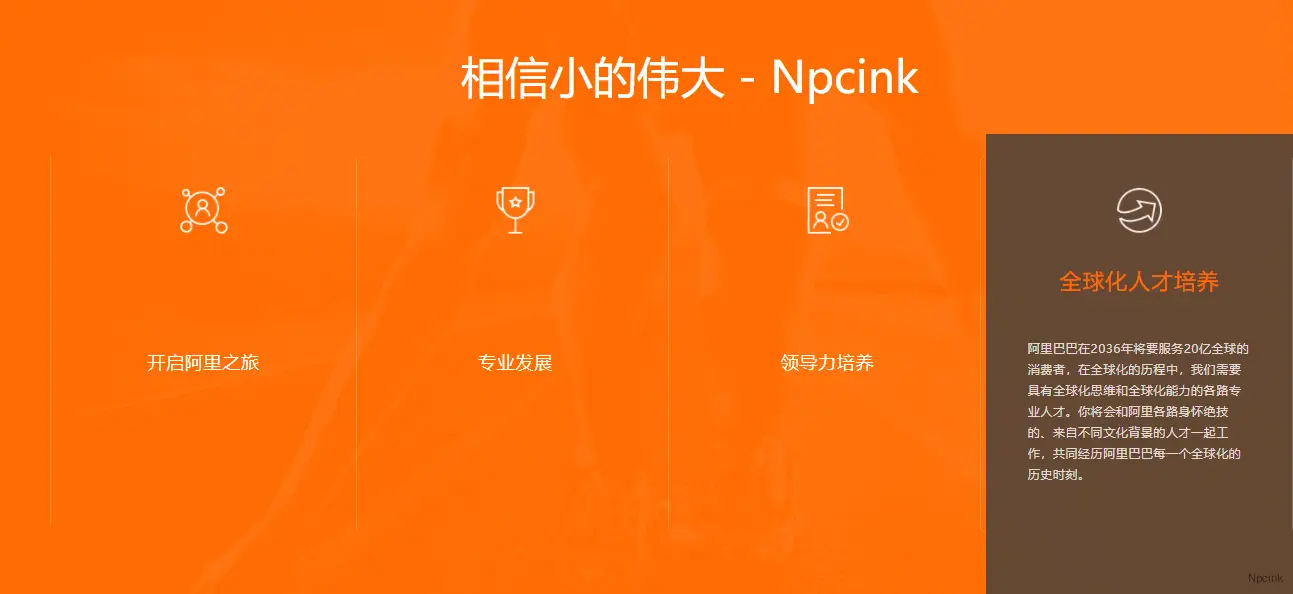 這是一款來自阿里巴巴的主題介紹用WordPress區塊,響應式,hover特效,舒適的動畫,保持簡潔的同時又能正確的傳達豐富的信息,在不同的屏幕尺寸上都有良好的表現。很適合用在一些特色介紹頁面。
