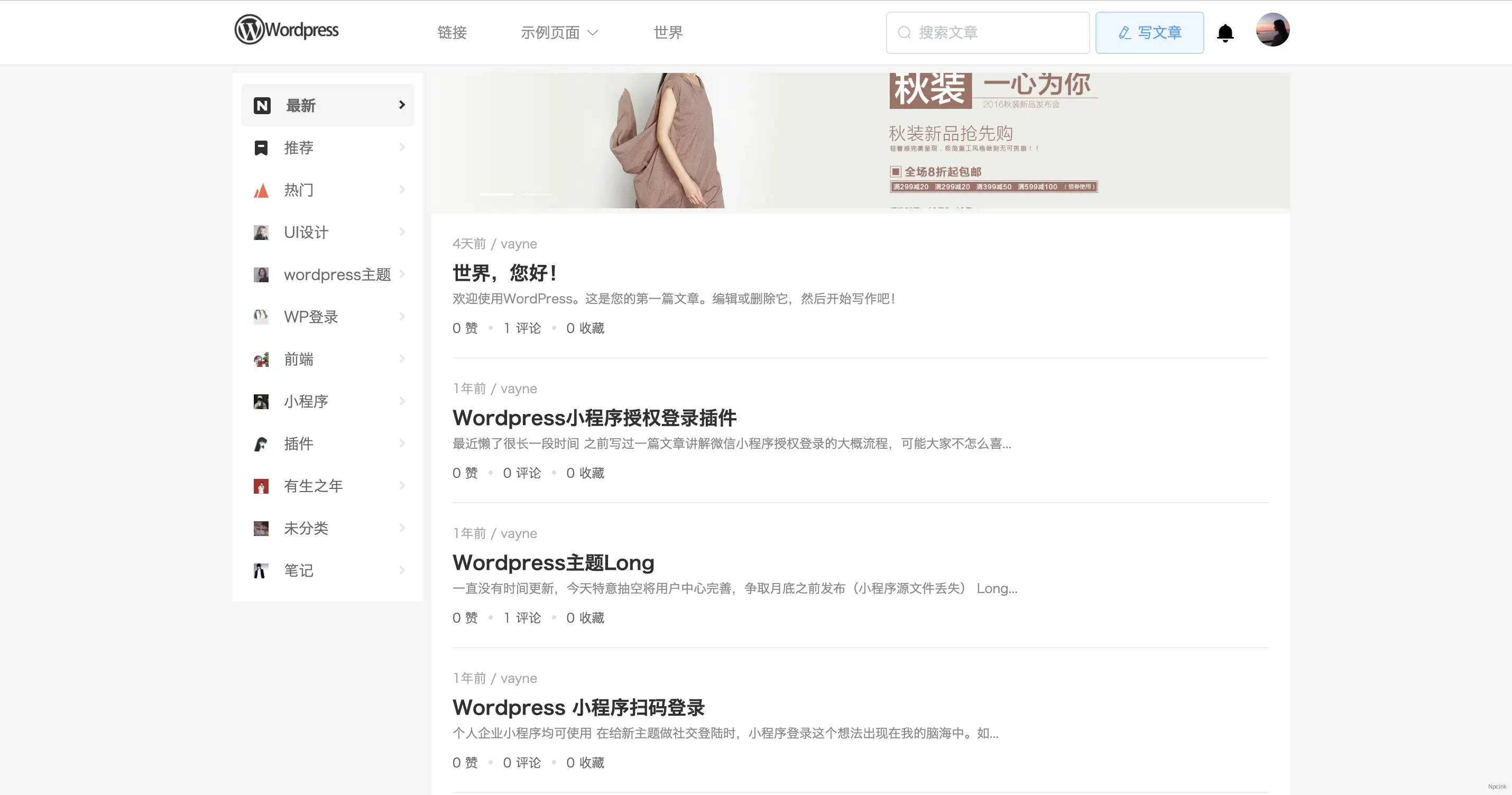 從自學(xué)vue.js開始到這款Wordpress主題開發(fā)上線,其中的也是波折不斷,慶幸自己沒有放棄吧!首先看看截圖預(yù)覽