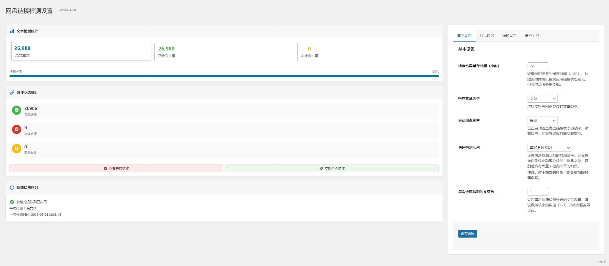 - 激活插件后,系統(tǒng)會(huì)自動(dòng)開(kāi)始檢測(cè)文章中的網(wǎng)盤(pán)鏈接
