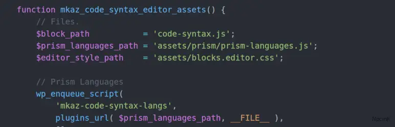 代碼語法塊通過使用Prism語法突出顯示器向核心代碼塊添加語法突出顯示支持來擴展WordPress的塊編輯器。