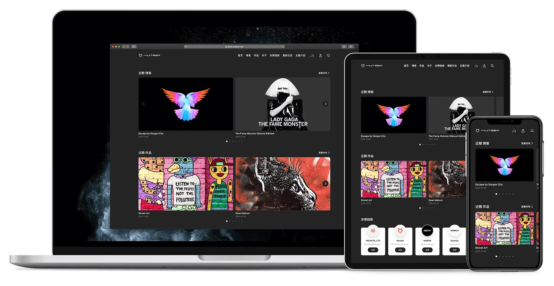 Muiteer主題完美適配Dark Mode(暗黑模式)切換,擁有PJAX無刷新加載、全站圖片懶加載技術,大大提升站點性能及使用體驗。簡單易用的后臺管理更是讓主題如虎添翼。