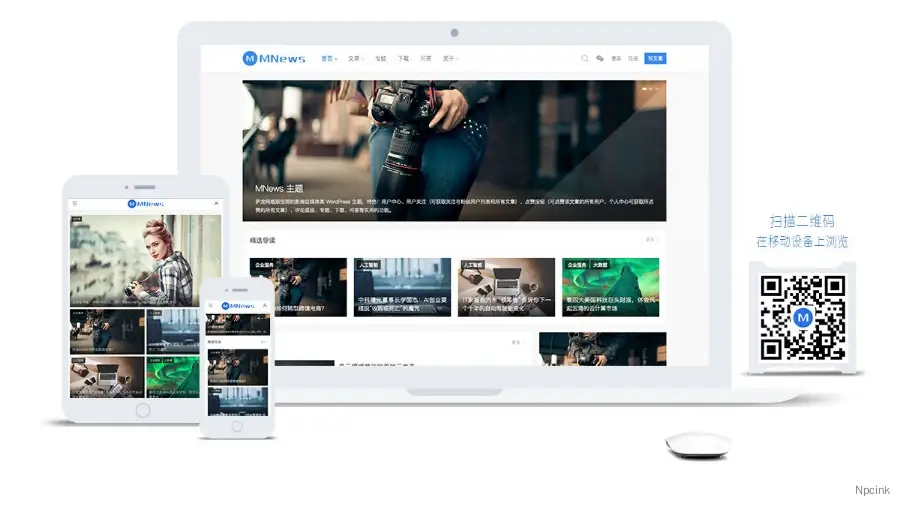 可響應所有終端設備,無論是PC電腦、平板還是智能手機,MNews 主題都能為您呈現完美的界面及購物體驗。MNews 主題響應式功能有一部分是通過 js 來判斷頁面的寬度,所以要在 PC 端縮放瀏覽器來查看響應式效果,需要刷新下頁面。