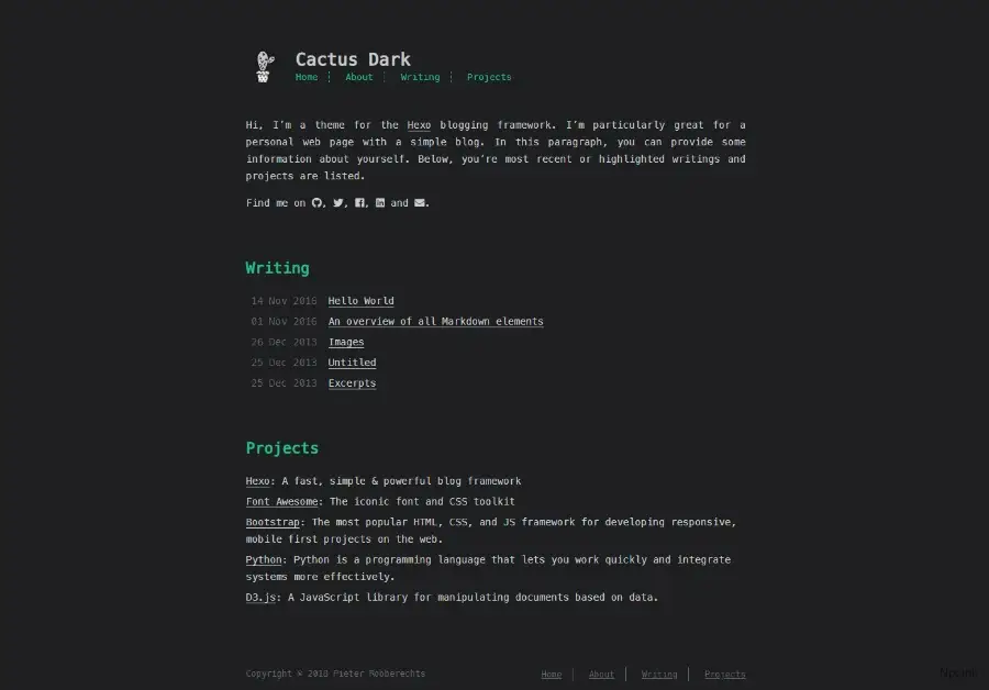 主題移植至Hexo 同名主題?hexo-theme-cactus參考(抄)了部分?Alili的樣式和功能。