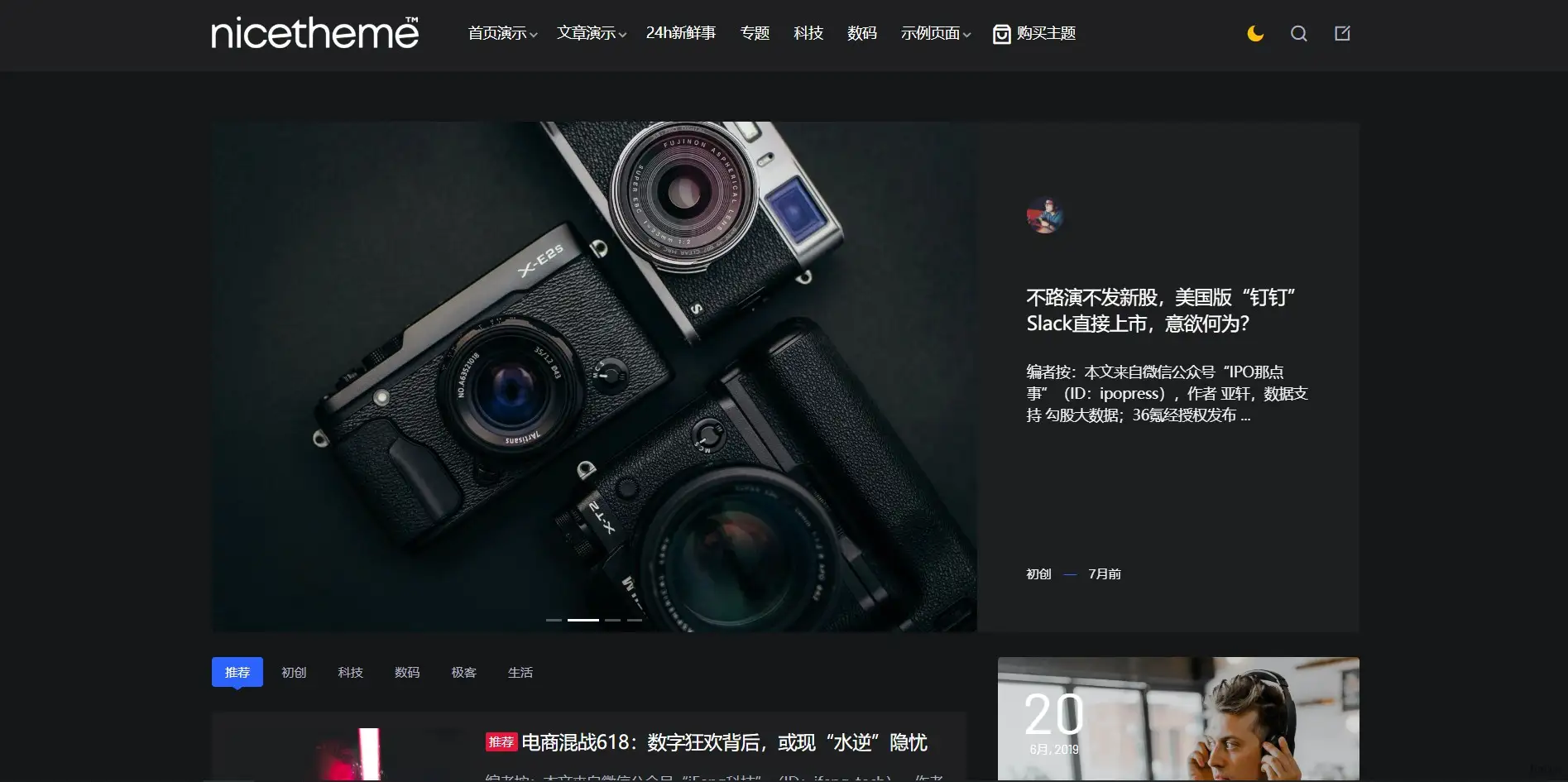 這是一款設計精良的wordpress自媒體主題,恰到好處的功能搭配nicetheme一貫精致的主題設計,將為你帶來前所未有的的精致wordpress主題體驗。